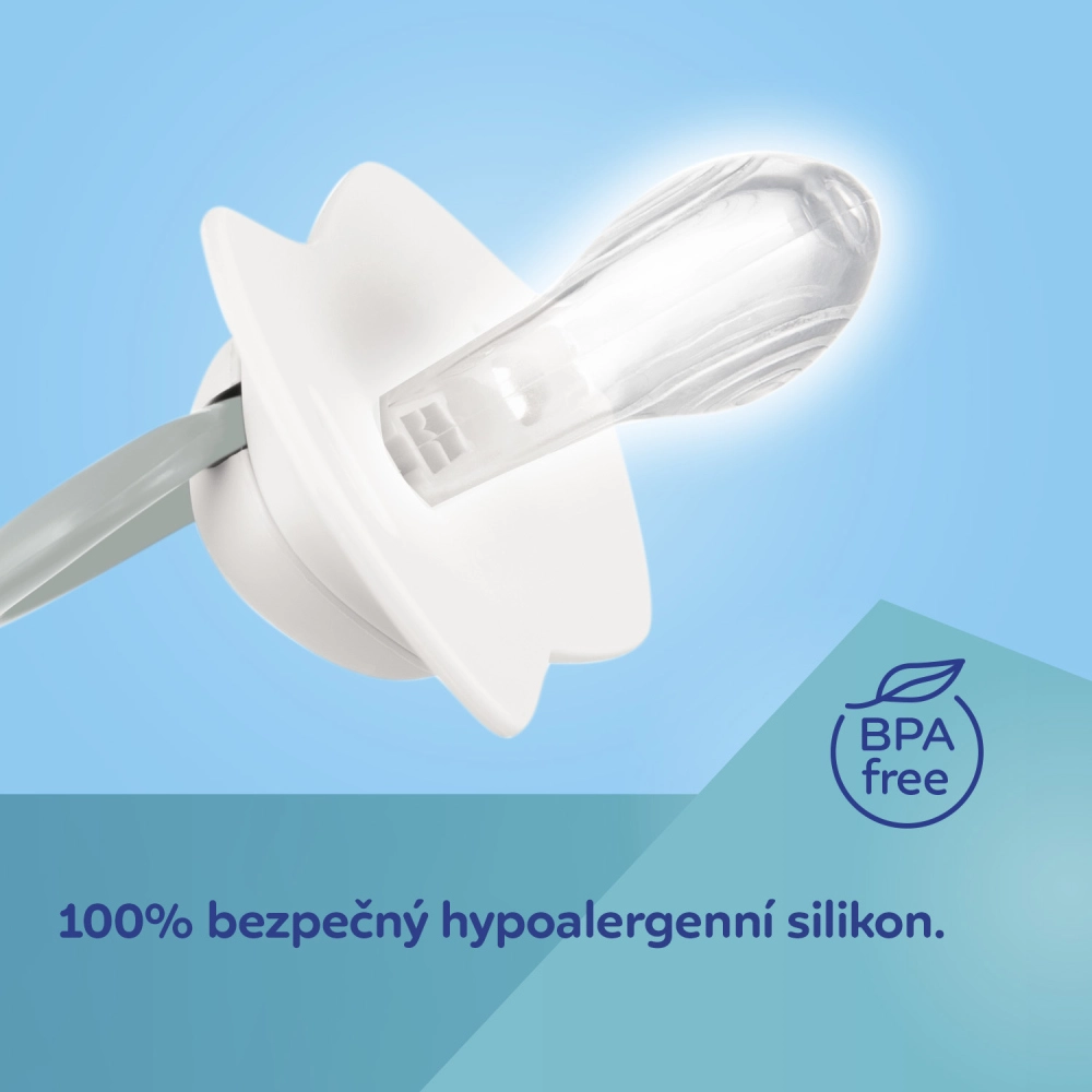 - Simetrična silikonska cucla – hipoalergena, bez okusa i mirisa.