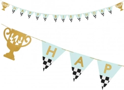 Baner je u svijetloplavim i crno-bijelim kariranim uzorcima koji zajedno s trofejima stvaraju sportski izgled. Prikladan je ne samo za dječje, već i za proslave odraslih.