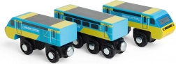 Tri vagončića lako se povezuju i sigurno drže pri rukovanju i vožnji po drvenim tračnicama.