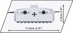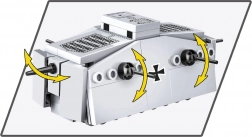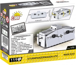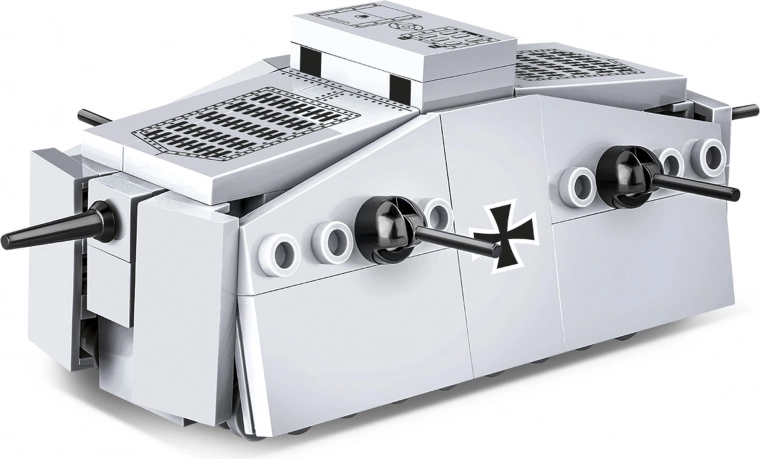 Sturmpanzerwagen A7V bio je prvi njemački tenk uveden krajem Prvog svjetskog rata. Ovaj kultni oklopnjak s posadom do 18 vojnika nosio je 57 mm top Nordfeld i šest strojnica MG 08. COBI model u mjerilu 1:72, duljine oko 11,5 cm, zadržava tipične značajke originala i impresionira preciznim tiskom križeva, rešetki i poklopaca.