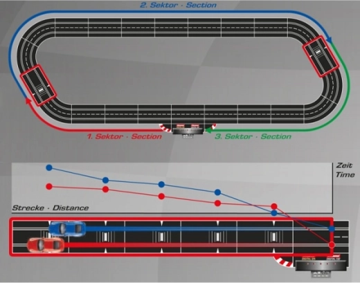 Proširite svoj Carrera autodrom preciznim mjerenjem međuvremena i pretvorite svaku vožnju u pravi utrku. Modul Check Lane omogućuje podjelu staze na sektore (do 3) i usporedbu vremena pojedinih dionica u režimu DIGITAL 132 i DIGITAL 124.