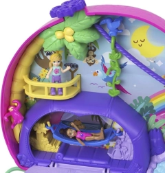 Ovaj set brenda Polly Pocket nudi beskrajne sate zabave zahvaljujući jedinstvenom dizajnu u obliku lijenog ljenjivca. Svaki dio seta otvara se u tropski raj koji uključuje 2 mikro lutkice i 12 različitih dodataka, uključujući 8 figurica životinjica. Djeca mogu kliziti zip-lineom s tukanom, opustiti se u visećoj hamaci ili se brčkati kod vodopada.