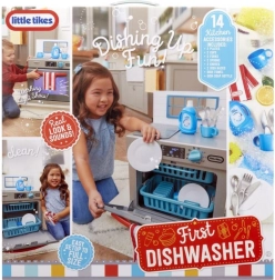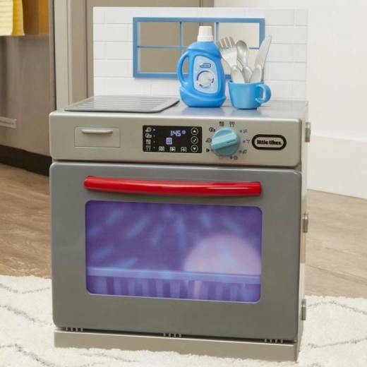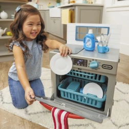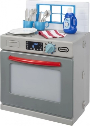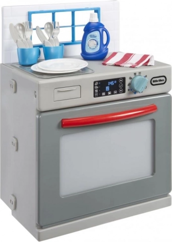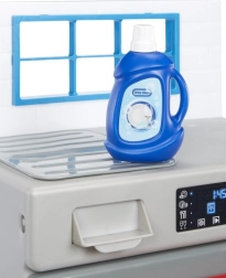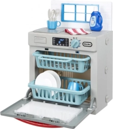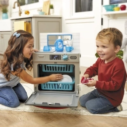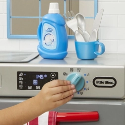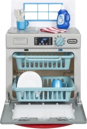 Mali pomoćnici će zavoljeti realističan dizajn sive perilice s crvenim detaljima, koja izgleda kao pravi kućanski aparat. Nakon dodavanja „sredstva” i okretanja funkcionalnog upravljača upali se svjetlo i pokrenu se autentični zvukovi pranja. Djeca mogu otvarati vrata, izvlačiti košare te slagati i vaditi posuđe, čime razvijaju motoriku i maštu.