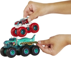 Šestokotačni tegljači HOT WHEELS MONSTER TRUCKS Big Rigs u mjerilu 1:64 donose pravu dozu akcije. Zahvaljujući 6 golemih kotača savladavaju svaki teren, a pomoću vučne kuke ili platforme mogu prevesti dodatno vozilo 1:64. Metalna izrada, izražajni detalji i odlična kompatibilnost s ostalim modelima jamče sate zabave. Proizvod je dio asortimana, nasumičan odabir modela, cijena za 1 kom.
