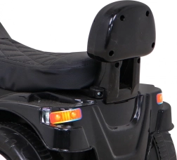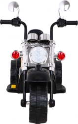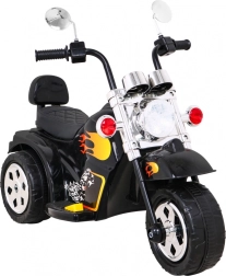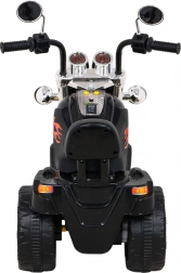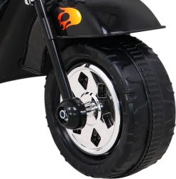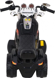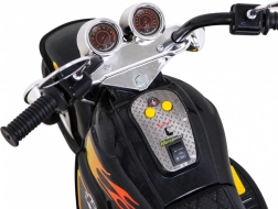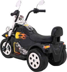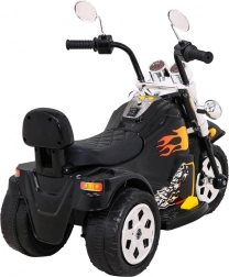 Stilski dječji električni motor u chopper stilu nudi stabilnu trokolnu izvedbu, sigurnu vožnju naprijed i natrag te atraktivne plamene detalje. Zahvaljujući motoru 25 W, akumulatoru 6 V / 4,5 Ah i prednjem svjetlu idealan je za prve vozačke doživljaje. Široki plastični kotači i udobno sjedalo osiguravaju stabilnost i komfor tijekom vožnje.