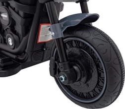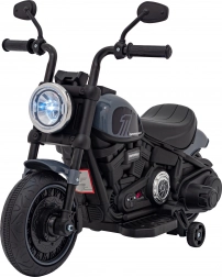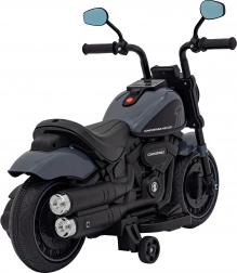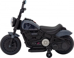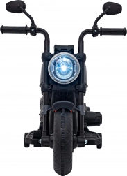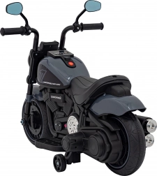 Stilski dječji električni motor u chopper stilu nudi realističan doživljaj vožnje zahvaljujući LED prednjem svjetlu, vožnji naprijed i natrag te bogatom audio panelu (FM radio, MP3, USB, SD, Bluetooth, AUX). Laka i stabilna konstrukcija s pomoćnim kotačićima, ergonomsko sjedalo i pregledna ploča osiguravaju zabavu i sigurnost za male vozače.