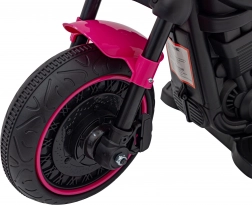 Stilizan dječji električni motor u chopper stilu donosi sigurnu zabavu za male vozače. Nudi snažan motor 20 W, bateriju 6 V/4,5 Ah, prednje LED svjetlo i stabilizacijske kotačiće. Zahvaljujući audio panelu s FM radijem, MP3, Bluetoothom, USB-om, SD-om i AUX-om djeca mogu uživati u omiljenim pjesmama pri svakoj vožnji.