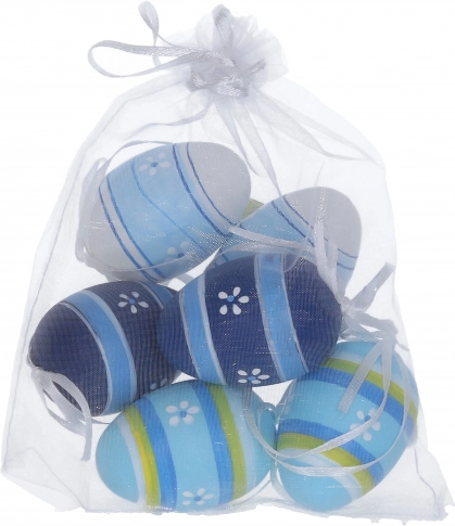 Ukrasna plastična jaja koja će uljepšati vaš dom. Svako jaje ima mjere 6 cm i pakiranje sadrži 6 komada u elegantnoj organza vrećici.