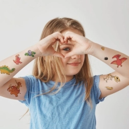 Otkrijte kolekciju privremenih tetovaža s omiljenim dinosaurusima. Djeca mogu odabrati svoj omiljeni motiv i u trenu se pretvoriti u dino-majstore. Tetovaže se lako nanose i uklanjaju te su sjajne za dječje zabave, kampove ili kao mala pažnja.