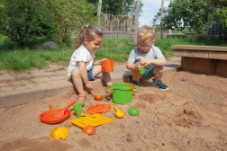 Laki i šareni dijelovi za grabljenje, pretakanje i oblikovanje pijeska. Potiče zajedničku igru i kreativnost djece.