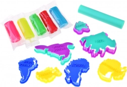 Set sadrži sve potrebno: modelirajuću masu u pet boja, 7 kalupa oblika kontinenata, 7 žigova s nazivima kontinenata i valjak. Dovoljno je razvaljati plastelin u tanji sloj i pomoću kalupa izrezati odabrane kontinente.