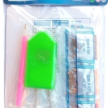 - Slika s ljepljivim slojem, aplikacijsko pero, vosak, posudica za kamenčiće, set šarenih kamenčića, stalak