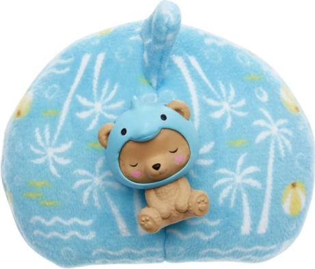 Gornji dio mekanog kostima okretanjem naopako postaje oversize jakna za lutku. Glava kostima pretvara se u ležaj za mini životinjicu.