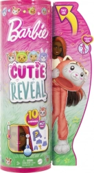 Lutke Barbie Cutie Reveal iz serije Kostimirane životinjice donose fantastičnu zabavu s kojom otkrivaš 10 iznenađenja! U njima ćeš pronaći životinjicu prerušenu u drugu životinju. Otkrij mačku kao crvenu pandu, psa kao žabu, medvjedića kao dupina ili zeku kao koalu. Skini kostim i otkrij lutku Barbie s dugom kosom koju možeš postavljati u različite poze. Uživaj u iznenađenjima poput cipela, torbice i minifigurice kućnog ljubimca. Kada okreneš kostim naopako, gornji dio postaje kaputić od iznimno mekane tkanine, a glava kostima pretvara se u skrovište za mini životinjicu. Otkrij čarobnu promjenu: uz pomoć hladne vode promijeni boju na licu lutke, a topla voda vraća izvorni izgled. Na ovaj način možeš mijenjati i izgled životinjice! Djeca će obožavati otkrivanje preslatkih iznenađenja i skupljanje lutaka iz serije Barbie Cutie Reveal. Prodaje se zasebno, ovisno o dostupnosti. Lutke ne mogu stajati samostalno. Boje i ukrasni elementi mogu se razlikovati.