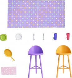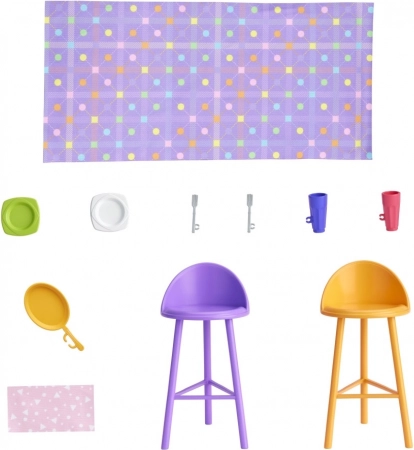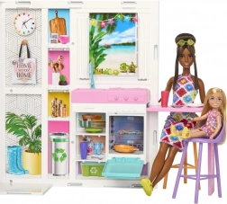 U paketu su lutka BARBIE i 11 stilskih dodataka – posuđe, 2 stolice, ručnik i dekica – koji ukrašavaju interijer i donose nove ideje za igru. Grafički motivi, poput razvrstavanja otpada, biljaka, solarnih panela na krovu ili električnog automobila, nenametljivo uče djecu o ekologiji.