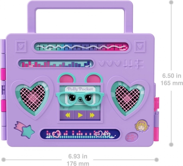 Pleši, pjevaj i otkrivaj iznenađenja s lutkom Polly Pocket u ovom rock setu Disco Dance Fashion Reveal! Zabava počinje višeslojnim raspakiravanjem, uključujući povlačenje zatvarača koje otkriva boombox. Set se otvara u školsku plesnu zabavu s DJ postajom, lukom od balona, ormarićem i 16 elemenata za igru. To je nabrijana zabava s trima iznenađenjima, uključujući papirnatu vrećicu koja se otapa i skriva dodatke, te ekskluzivnu Friend Clip hudicu s DJ motivom koja se slaže s 3-inčnom lutkom Polly Pocket skrivenom iza ormarića! Djeca mogu stvarati avanture na plesnom podiju unutar ili izvan seta, a zahvaljujući ručki za nošenje lako se spakira i ponese na put. Sjajan je poklon za djecu od 4 godine naviše, posebno za one koji vole glazbu, ples i iznenađenja! Boje i ukrasi mogu se razlikovati.