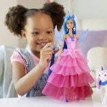 Proslavite 65. obljetnicu BARBIE s čarobnim setom princeze i njezina alicorna! Lutka s dugom plavom kosom, ružičastom haljinom i odvojivim krilima i repom donosi puno mašte. Ne nedostaju traka za kosu s rogom, srebrne naušnice, stylish cipele ni četka za raščešljavanje. Dio seta je i krilati jednorog za priče pune magije.