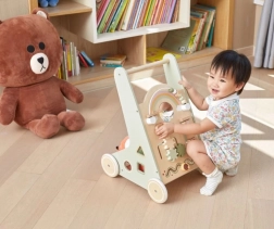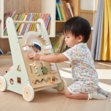 Robusna drvena konstrukcija i glatki kotači pomažu djetetu sigurno i bezbrižno vježbati hod i ravnotežu.