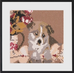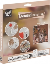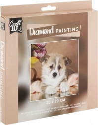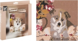 Dijamantno slikanje je kreativna tehnika pri kojoj se pomoću aplikacijskog pera nanose sitni kamenčići na unaprijed otisnuto i samoljepljivo platno. Svaki kamenčić ima svoje mjesto prema legendi, pa je izrada intuitivna, umirujuća i prikladna i za početnike. Gotova slika s motivom slatkog šteneta postat će prekrasna dekoracija vašeg doma.