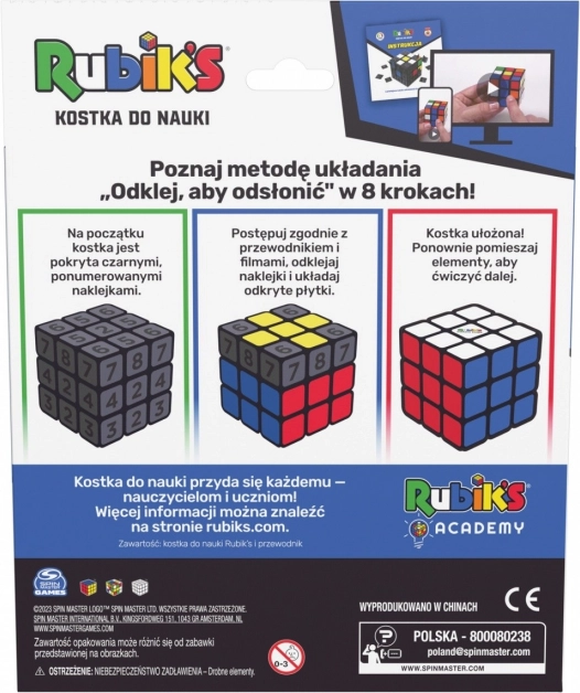 Oduvijek ste željeli riješiti Rubikovu kocku, ali ne znate odakle početi? Rubik's: Training Cube je pojednostavljen način za učenje slaganja Rubikove kocke. Rješavajte brže uz pomoć naljepnica. Metoda "odlijepi i otkrij" najjednostavniji je način za naučiti slagati Rubikovu kocku 3x3. Posebno je osmostupanjska metoda "peel to reveal" osmišljena da vam pruži podršku pri rješavanju zahvaljujući priloženom vodiču korak po korak i videozapisima. U ovoj metodi kocka je u početku prekrivena crnim numeriranim naljepnicama. Slijedite vodič i videozapise, uklanjajte naljepnice i rješavajte otkrivene dijelove. Prije nego što se snađete, posložit ćete cijelu kocku. Nasumično odlijepite stranice i ponovite vježbu. Sada imate standardnu Rubikovu kocku 3x3 s kojom se možete igrati bez kraja. Odljepljivanje naljepnica i zatim postupno rješavanje otkrivene skupine dijelova znači pojednostavljeno učenje i manje ometanja. Vodič i video lekcije osmišljeni su da se međusobno nadopunjuju i osiguraju najbolju razinu učenja. Rubik's: Trening kocka prikladno je pomagalo za svakoga, uključujući učitelje, učenike, hobiste i sve od 8 godina naviše. Posjetite stranicu coach.rubiks.com za savjete kako riješiti Rubikovu kocku. Tvrtka Spin Master nudi kućnu zabavu s nizom igračaka i igara za djecu, uključujući igračke za malu djecu, igračke za djevojčice i društvene igre. Skupite omiljene plišance, fidget igračke, RC automobile, figurice, lutke, dodatke i još mnogo toga. Od jedinstvenih darova za muškarce do igračaka za bebe, djecu i one koji se u srcu osjećaju kao djeca, s našim opsežnim katalogom lakše ćete odabrati rođendanske poklone. Ako još želite nešto više, otkrijte dječje igre, igračke za bazen, vanjske igre i monster truckove za sva godišnja doba. Razveselite se kreativnošću s likovnim priborom, građevnim igračkama i autićima na daljinsko upravljanje te prenesite akciju na stol uz zagonetke za odrasle ili kartaške igre. Još danas zaronite u pješčanik s igrom Spin Master.