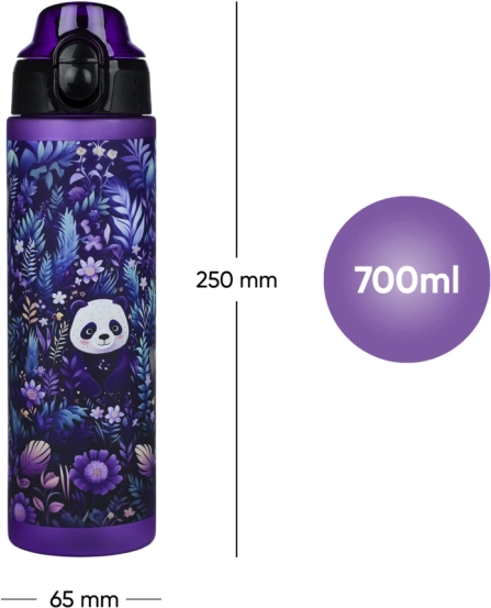 Stilna i zdravstveno ispravna boca za piće BAAGL zapremnine 700 ml s motivom Jungle Panda idealna je za školu, izlete i sport. Zahvaljujući zaključivom poklopcu ne propušta, praktična traka olakšava nošenje, a certificirani tritan bez BPA, PVC-a i ftalata jamči čist okus napitka bez mirisa plastike.
