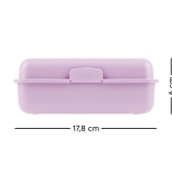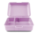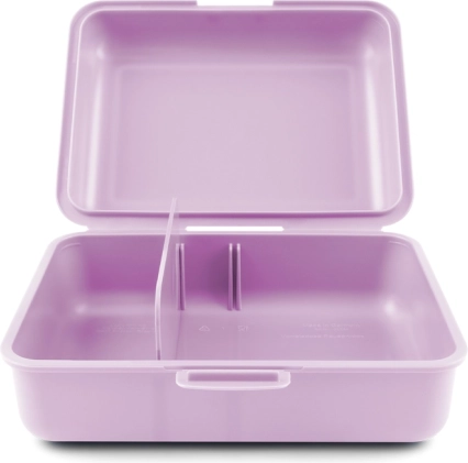 Ova praktična plastična kutija za užinu u atraktivnoj ljubičastoj boji idealna je za svakodnevnu prehranu u školi, na poslu ili na putovanjima. Kutija nudi dovoljno prostora za vaše omiljene užine, a dodatno ima pregradu koja omogućuje odvojeno spremanje namirnica. Ponesite različite vrste hrane bez miješanja.