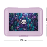 Kutija je opremljena zatvaranjem s jednom kopčom za sigurno čuvanje sadržaja, a preporučuje se ručno pranje kako bi se produžio vijek trajanja. S dimenzijama 17,8 cm x 12,2 cm dovoljno je kompaktna da stane u torbu, a istodobno nudi dovoljno prostora za obilnu užinu.