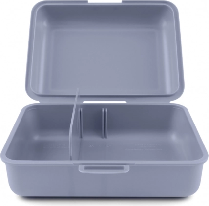 Stilska plastična kutija u plavoj boji, idealna za sigurno spremanje vaše užine. Ova kutija je opremljena praktičnim zatvaranjem na jednu bravu i pregradom za jednostavnu organizaciju.