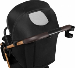Veliki XXL krović s UPF50+ filtrom i vodoodbojnom obradom štiti od sunca i kiše, ventilacijski prozor s mrežom poboljšava cirkulaciju zraka. Veliki pjenasti EVA kotači s ovjesom sprijeda i straga udobno savladavaju grad i odmor, prednji kotači se okreću 360° s mogućnošću blokade i kočnica click&ride osigurava sigurnost pri zaustavljanju. Praktični su auto-folding i sklapanje jednom rukom u kompaktne dimenzije, remen za rame i putna torba.
