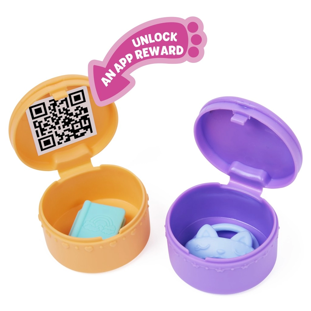 Uđite u svijet mašte i mekanih snova sa spavaćim setom iz Gabby’s Dollhouse. Nakon otvaranja očekuje vas kolekcionarska figurica Pillow Cat, tri komada namještaja i slatki plišani ljubimac. Otvorite Mačje pošiljke i otkrijte dva iznenađenja: otvarajuću knjigu i masku za spavanje za Pillow Cat.