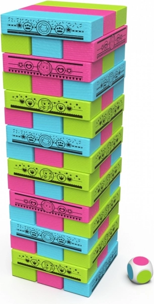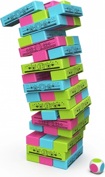 Igra je dopunjena obojenom kockom koja određuje koju boju kocke odabrati, što pojačava iznenađenja i zabavu.