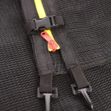 Praktični obostrani patentni zatvarač sa sigurnosnom kopčom omogućuje lako i sigurno otvaranje iznutra i izvana. Mreža je univerzalna – pristaje većini trampolina sa 6 stupova (3 dvostruke noge) i visinom mreže oko 160 cm. Brza zamjena stare mreže novom produžit će vijek trajanja vašeg trampolina i povećati sigurnost cijele obitelji.