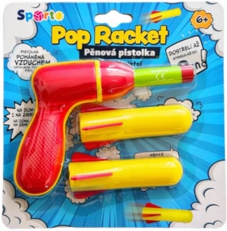 Pjenasti pištolj SPORTO Pop Racket osmišljen je za djecu koja vole dinamične igre, a istovremeno trebaju sigurnu igračku. Jednostavan zračni mehanizam u dršci osigurava pouzdano ispaljivanje bez potrebe za baterijama ili punjenjem. Zahvaljujući mekanim pjenastim mecima igra je nježna prema okolini i malim strijelcima.
