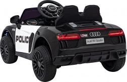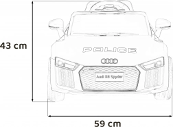Policijski autić AUDI R8 osmišljen je za maksimalnu zabavu i sigurnost. Zahvaljujući snažnim motorima 2× 35 W i dvostrukoj bateriji, djeca će uživati u dužoj vožnji, dok roditelji imaju sve pod kontrolom putem 2.4G upravljača s tri brzine i sigurnosnom tipkom STOP. Realističan izgled upotpunjuju LED svjetla sprijeda i straga, otvarajuća vrata i udobno sjedalo od eko kože sa sigurnosnim pojasom.
