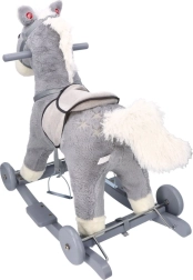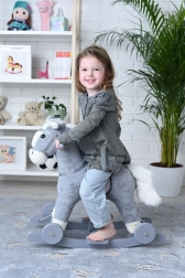 Slatki plišani klovnuti konjić 2u1 s kotačićima u sivoj boji razveselit će svakog malog jahača. Zahvaljujući kombinaciji nudi dvostruku zabavu, dok mekani pliš i stabilna drvena baza osiguravaju udobnost i sigurnost. Nosivost 50 kg, za djecu od 3 godine, s CE certifikatom.