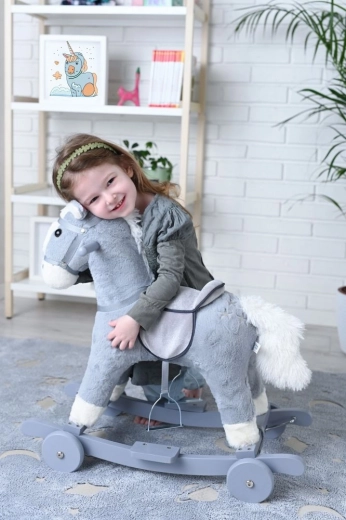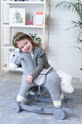 Uživajte u klasičnom njihaju i vožnji po sobi. Klovnuti konjić 2u1 s kotačićima spaja provjerenu drvenu konstrukciju s mekim plišem, udobnim sjedalom i sigurnim ručkama. Sivo izdanje pristaje svakoj dječjoj sobi te potiče maštu i razvoj ravnoteže.