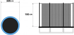 Unutarnja mreža sprečava kontakt s stupovima i oprugama te stvara siguran prostor za skakanje na promjeru od 305 cm.