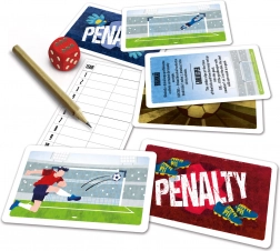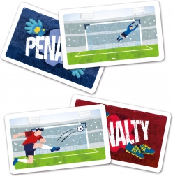 Doživite atmosferu stadiona za stolom – napadač se zalijeće, vratar bira stranu i pada GOOOL! Dino igraće karte Penalty su živahna i pristupačna igra za male i velike ljubitelje nogometa. Zahvaljujući kratkom vremenu igranja i jednostavnim pravilima uživat ćete u njoj bilo kada i bilo gdje.