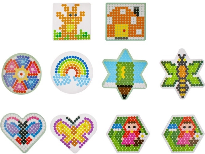 Kreativni set pegla-perli 5000 kom, 10 boja, šablone, podloge i pinceta u prijenosnoj kanti. Potiče finu motoriku i kreativnost.