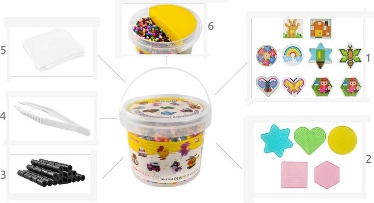 Ovaj bogati set pegla-perli idealan je za kućno stvaranje i za vrtiće. U pakiranju ćete naći 5000 perli u deset osnovnih boja, praktične šablone i dodatke uz koje djeca lako izrađuju raznolike slike, likove i životinjice. Dodavanjem više slojeva moguće je izraditi i 3D modele. Lagano i kompaktno pakiranje u zatvorivoj kanti omogućuje jednostavno prenošenje i spremanje.