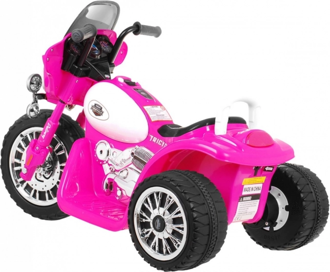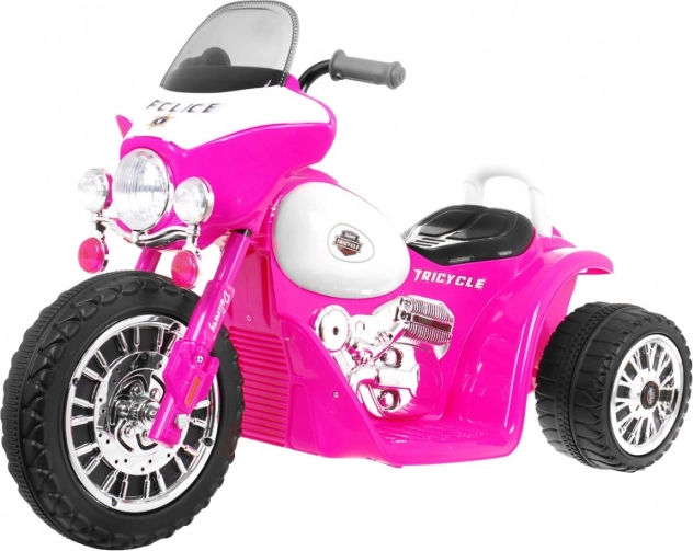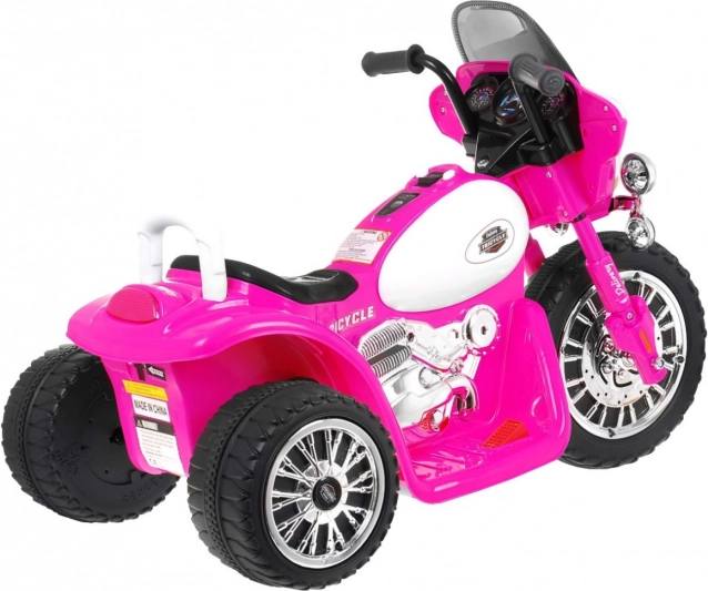 Ovaj ružičasti električni chopper dizajniran je za najmlađe ljubitelje vožnje. Čvrsti plastični kotači s gumenim gaznim slojem osiguravaju bolji grip i tihi rad, dok udobno sjedalo 18×18 cm pruža stabilan položaj. Tijekom vožnje automatski se pale prednja LED svjetla, a za zabavu se brinu melodije i truba.
