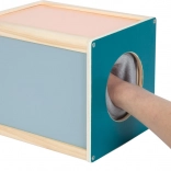 Naša igračka nudi svestranu i dugotrajnu zabavu zahvaljujući dvama bočnim otvorima koji djeci omogućuju dodirivanje različitih predmeta unutar. Odlična je kao igra pamćenja, igra traženja ili prepoznavanja. Ova kutija izrađena je od drva i ima moderan, šareni dizajn.