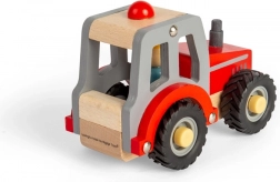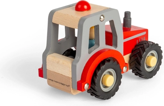 Ovaj traktor savršen je za razvoj motoričkih vještina djece. Njegova konstrukcija kombinira prirodno drvo s crvenim i sivim lakom, što mu daje atraktivan izgled.
