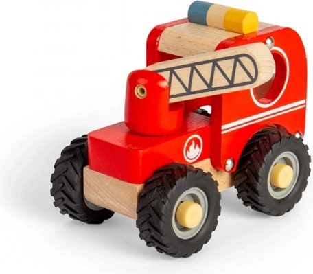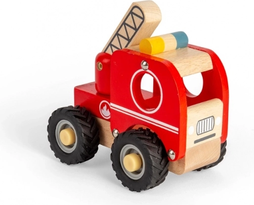 Drveni vatrogasni kamion za maštovitu igru, idealan za razvoj motorike i koordinacije oko-ruka. Kombinacija crvenog laka i prirodnog drva oduševit će svako dijete.