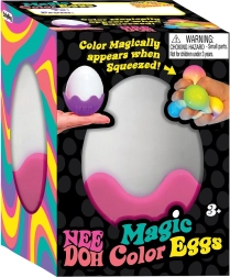 Čarobna jaja Nee Doh dostupna su u tri različite varijante boja, nude udoban hvat i ugodan osjećaj pri stiskanju. Ne samo da pružaju vizualno zadovoljstvo svojim živim bojama, već i pomažu u smanjenju stresa. Zahvaljujući prenosivosti, idealna su za putovanja.