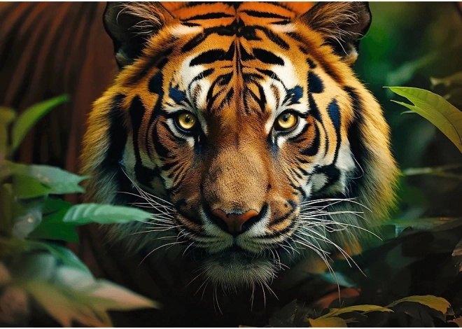 Otkrijte ljepotu prirode uz slagalicu od 1000 dijelova s motivom veličanstvenog tigra skrivenog u lišću. Nakon slaganja nastaje slika dimenzija 68,3 × 48 cm. Izrađeno s naglaskom na ekološke materijale i poseban kalandrirani papir za manje odsjaje i ugodnije slaganje.