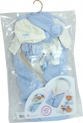 U pakiranju ćete pronaći mekani komplet uključujući kapicu i dodatke koji se stilski slažu s brzom povojnicom. Sve je dizajnirano za lutke NEW BORN veličine 40–42 cm.
