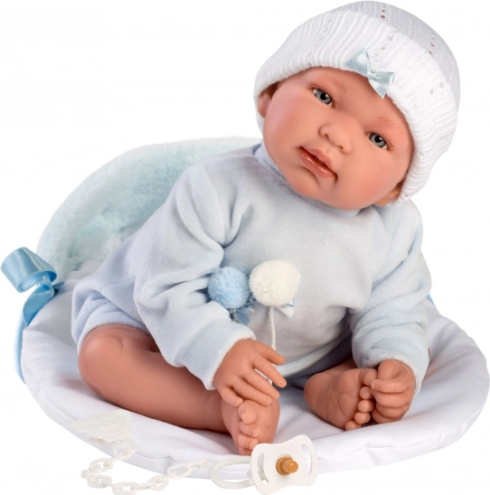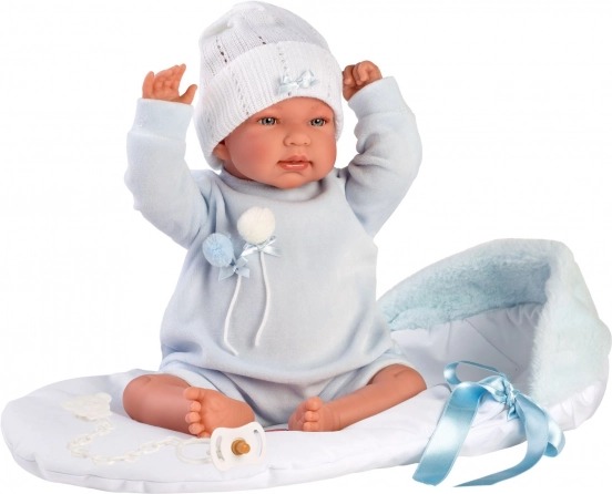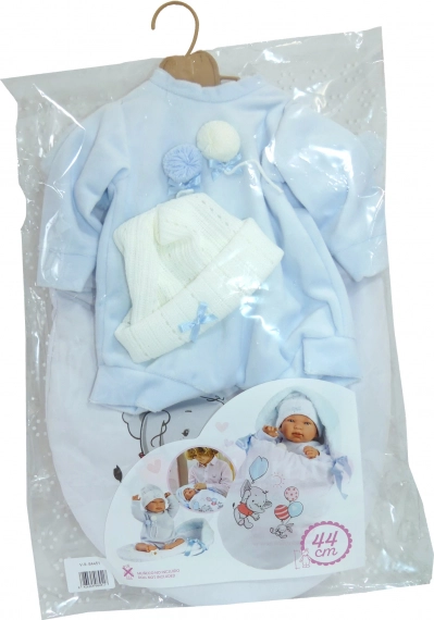 Dvodijelni set za lutku NEW BORN veličine 43–44 cm uključuje mekanu odjeću i toplu vrećicu. Ručna izrada u Španjolskoj jamči kvalitetu, preciznu izradu i udobnost za igru. Idealno za razvoj mašte i njegujućih vještina djece od 3 godine.