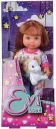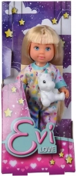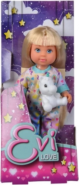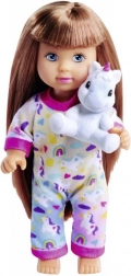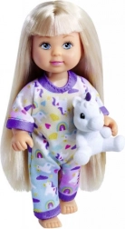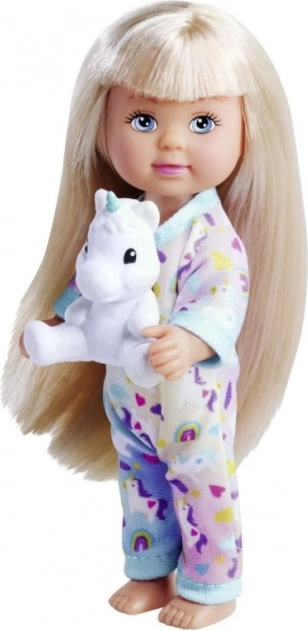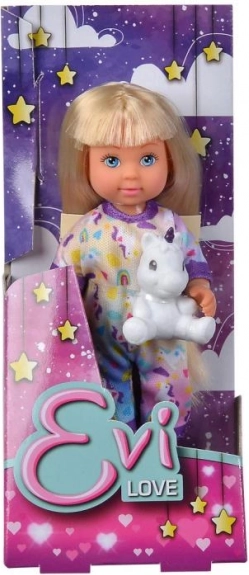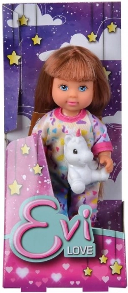 Slatka lutkica Evi u mekoj pidžami s plišanim jednorogom razveselit će svako dijete. Tri različite varijante, idealno za kreativnu i maštovitu igru. Visina lutkice 12 cm, prikladno od 3 godine.