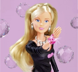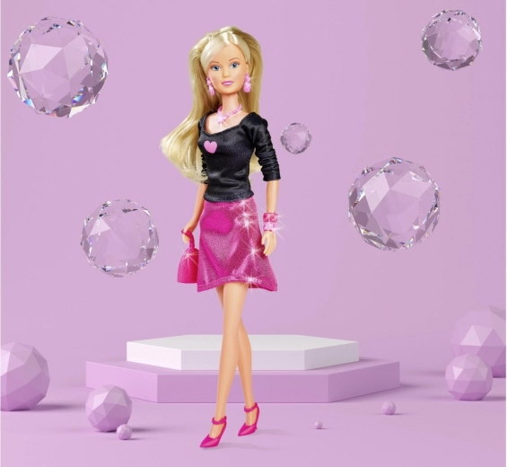 Otkrijte svijet mode i sjaja s lutkom STEFFI LOVE u zlatarskom butiku. Stilizirana lutka visine 29 cm ima pokretne udove, nosi elegantan top s motivom srca i svjetlucavu suknju. U kompletu su ogrlice, naušnice, narukvice, torbica i cipele s potpeticom – idealno za kreativnu i maštovitu igru djece od 3 godine naviše.